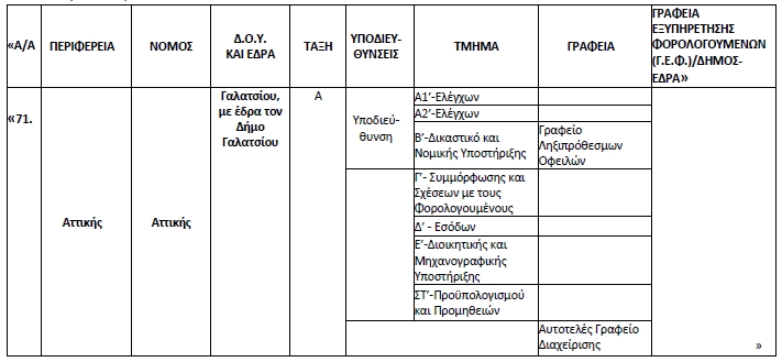 «Πίνακα 1-ΔΗΜΟΣΙΕΣ ΟΙΚΟΝΟΜΙΚΕΣ ΥΠΗΡΕΣΙΕΣ (Δ.Ο.Υ.)» της περίπτωσης 2) από Δ.Ο.Υ. «ΓΑΛΑΤΣΙΟΥ (Α-Β)» σε Δ.Ο.Υ. «ΓΑΛΑΤΣΙΟΥ (Α)».