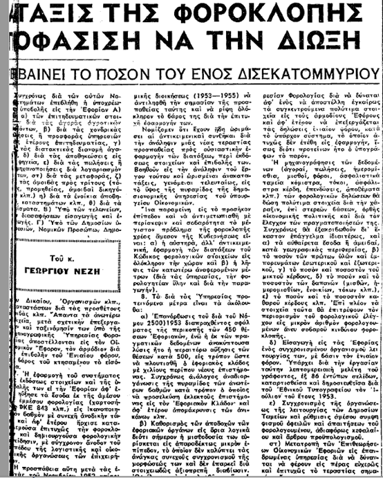 Η «φορολογική μεταρρύθμιση» του 1955-58.