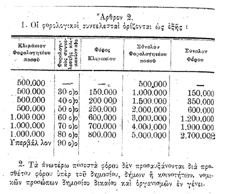 Ο «φορολογικός» συντελεστής που έφτανε στο 90%, είναι μάλλον ο υψηλότερος συντελεστής φορολογίας που επιβλήθηκε ποτέ από την ίδρυση του Νεοελληνικού Κράτους.