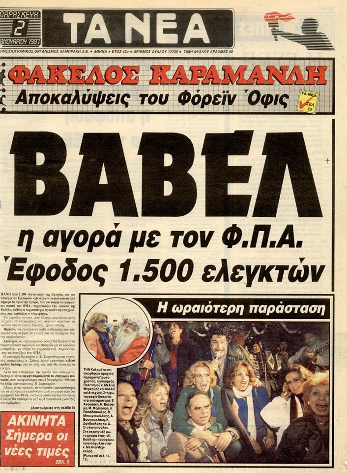 [ Εφημερίδα «ΤΑ ΝΕΑ» 2-1-1987 ]