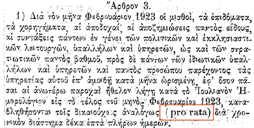 Και μην νομίζετε ότι η λέξη pro rata εμφανίστηκε πρώτη φορά στον νόμο του ΦΠΑ…..