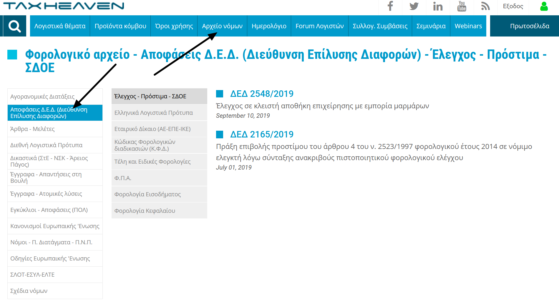 Τις αποφάσεις της Δ.Ε.Δ. (καθώς και όλες τις άλλες αποφάσεις / νόμους / νομολογία) μπορείτε εκτός από την αναζήτηση να τις βρείτε στο ανανεωμένο Φορολογικό Αρχείο του κόμβου εδώ – Αρχείο