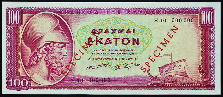 Τραπεζογραμμάτιο της Τράπεζας της Ελλάδος (1955) που φέρει την υπογραφή του Ξενοφώντος Ζολώτα ως Διοικητή (Print) |