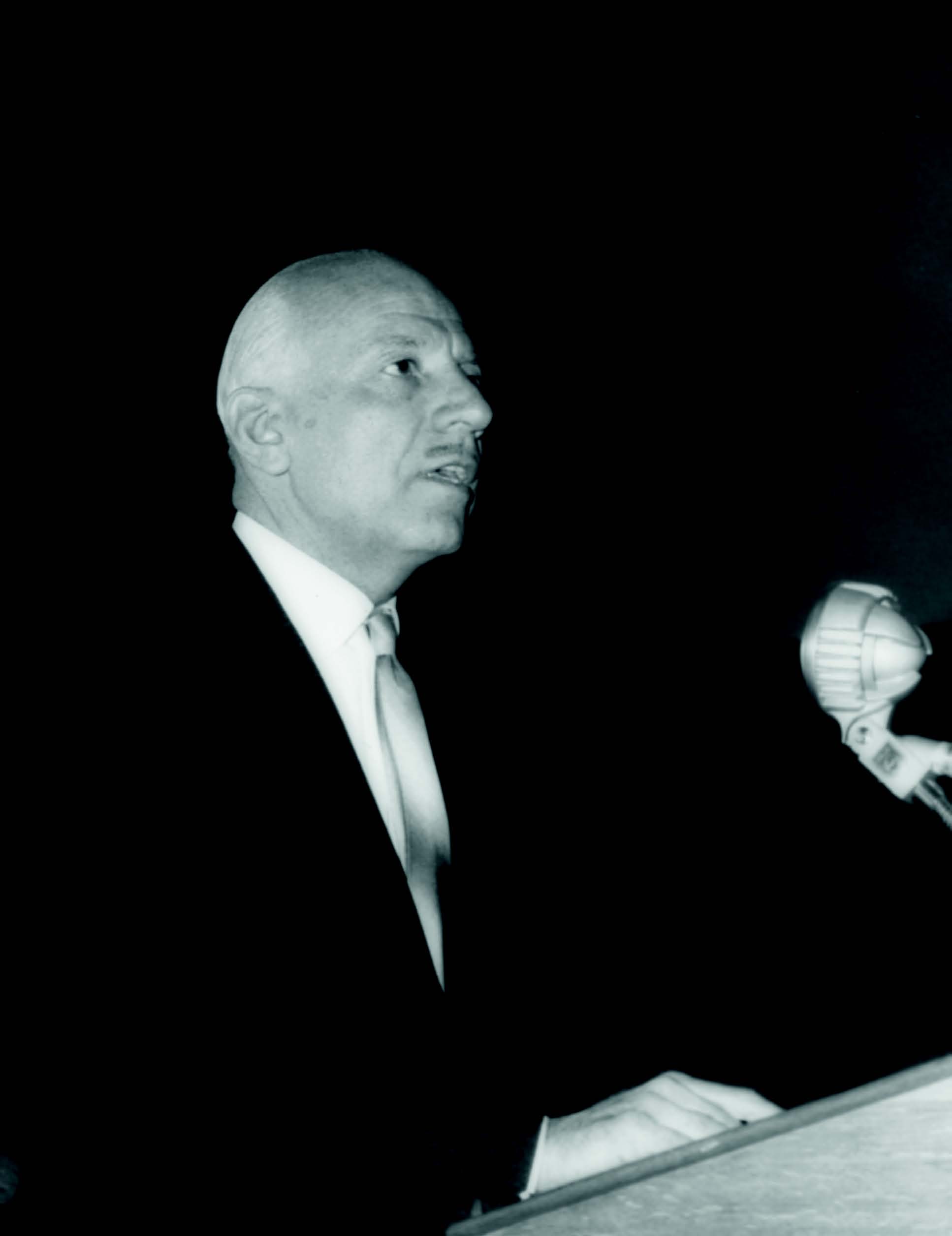 Ο Ξενοφών Ζολώτας κατά την ομιλία του στην Ετήσια Γενική Συνέλευση των Μετόχων της Τράπεζας της Ελλάδος, 9.4.1959 (Web, Print) |