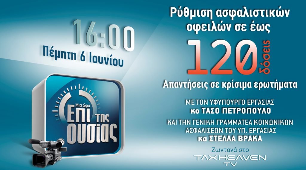 Ρύθμιση ασφαλιστικών οφειλών σε έως 120 δόσεις. Δείτε σε μαγνητοσκόπηση την εκπομπή «Επί της ουσίας»