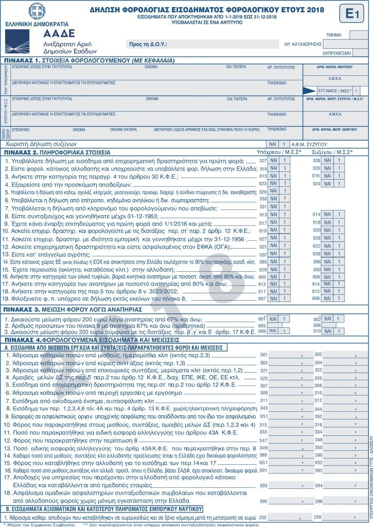 (Τροποποίηση της Α. 1041/2019 απόφασης του Διοικητή ΑΑΔΕ «Τύπος και περιεχόμενο της δήλωσης φορολογίας εισοδήματος φυσικών προσώπων φορολογικού έτους 2018, των λοιπών εντύπων και των δικαιολογητικών […]