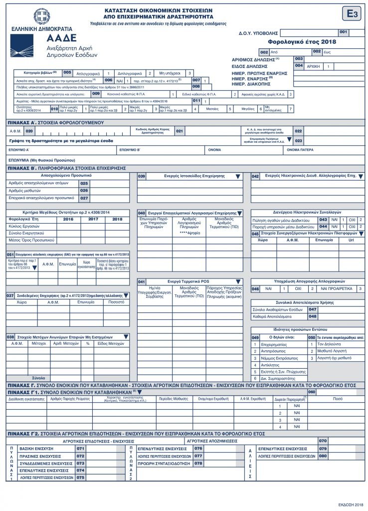 Τύπος και περιεχόμενο της «ΚΑΤΑΣΤΑΣΗΣ ΟΙΚΟΝΟΜΙΚΩΝ ΣΤΟΙΧΕΙΩΝ ΑΠΟ ΕΠΙΧΕΙΡΗΜΑΤΙ-ΚΗ ΔΡΑΣΤΗΡΙΟΤΗΤΑ» -Έντυπο Ε3