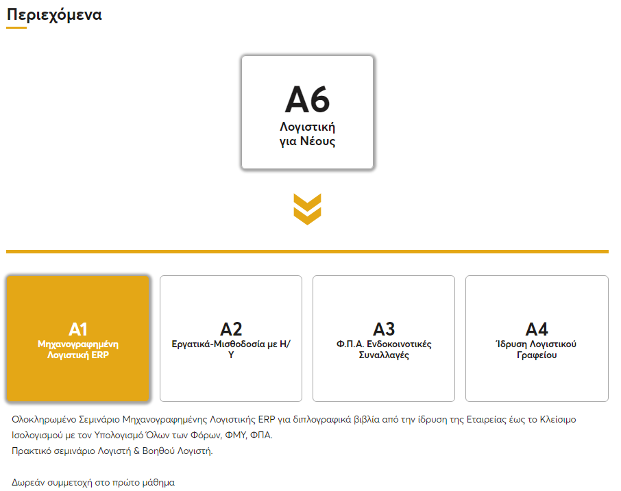 Τα προγράμματα που διδάσκονται και χορηγούνται στον κάθε σπουδαστή μας, στο συγκεκριμένο σεμινάριο είναι: